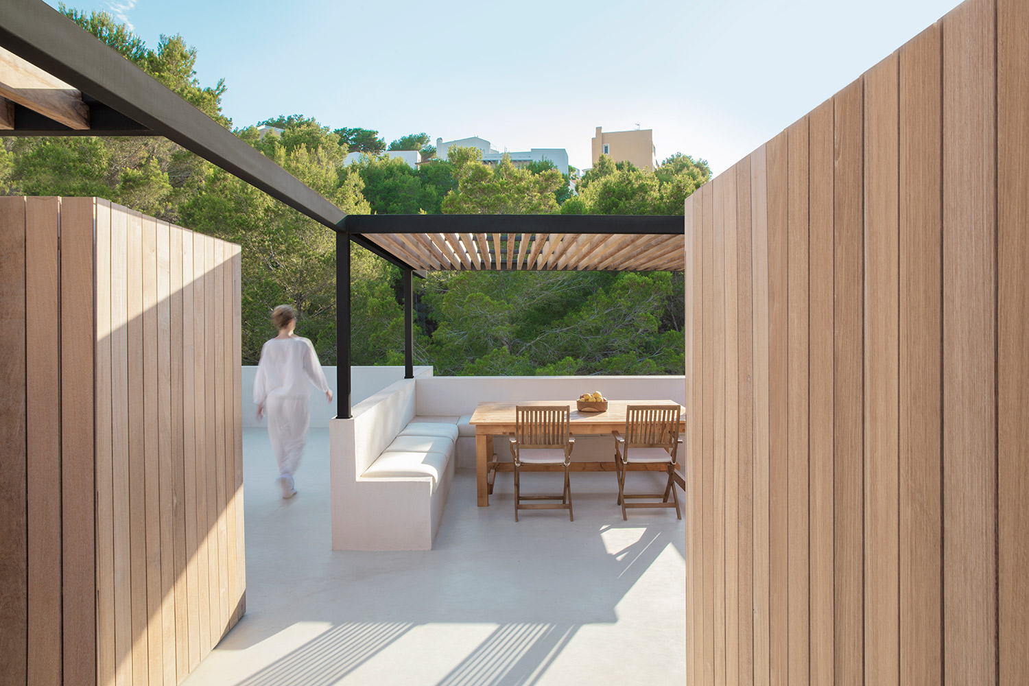 Located west of Ibiza, the essence of the island has inspired the design of this small duplex leading to a serene and orderly identity. The owners sought to reduce the composition to the essential without renouncing the spirit of a Mediterranean lifestyle. Therefore, the narrative focuses on pure whites and controlling the excess of light on an open-to-nature terrace.