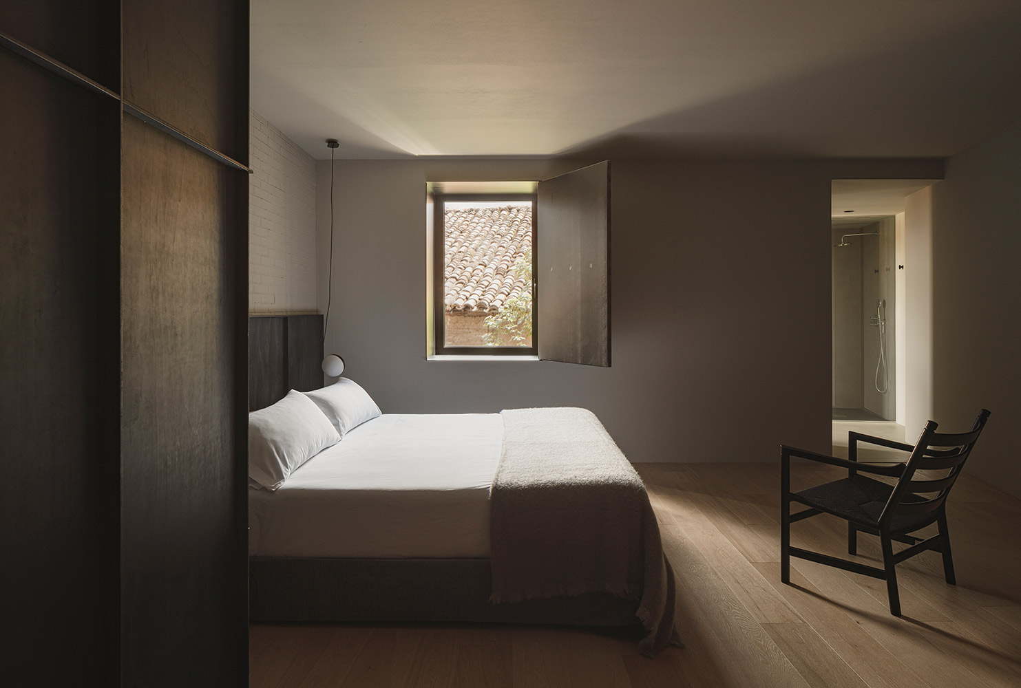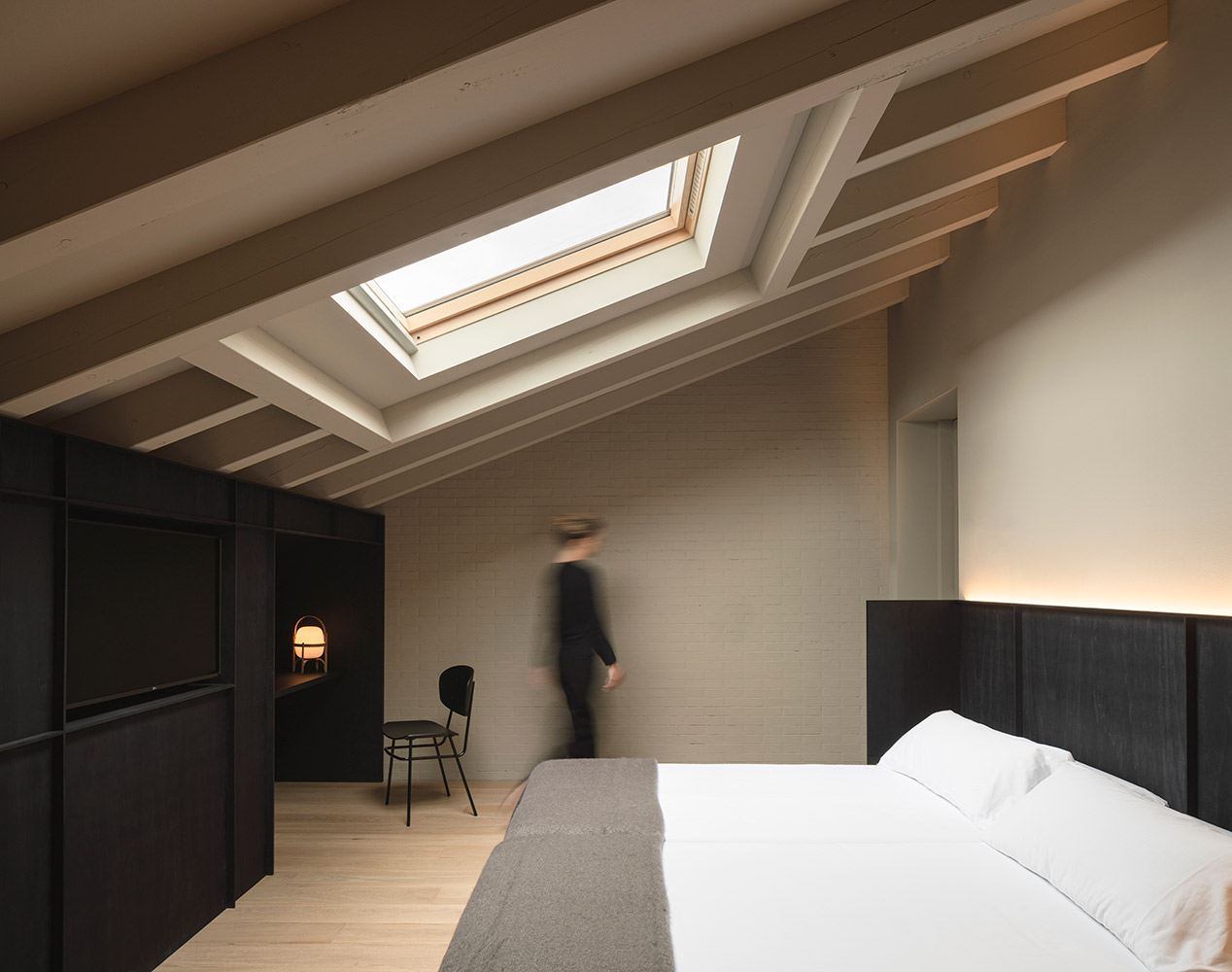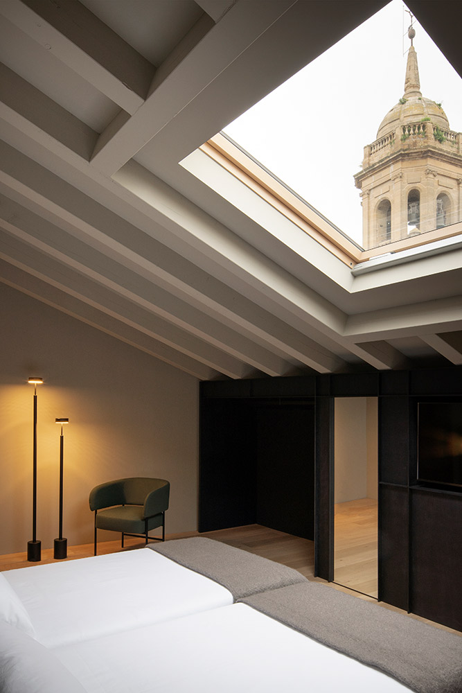 There are places you run away from and places to run away to. Tired of their hectic lives in a tourist town on the Costa Brava, our clients decided to find a quiet place in La Rioja to simplify their lifestyle. The couple found an 18th-century manor house in Grañón, a tiny charming village where the Camino de Santiago passes through. The property had enough space to create a very relaxing and convivial hotel with only 11 rooms. Casa Grande Hotel is the affirmation of this idea turned by our studio into a scene that intends to make you feel at home.