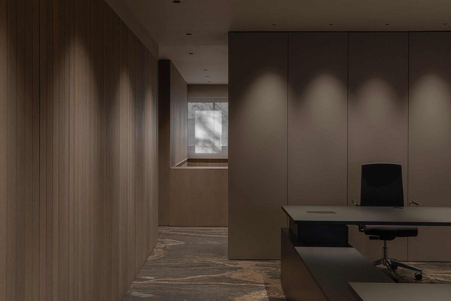From a distinctive marble floor that runs throughout the entire project, the design of these offices in Barcelona gains strength, emphasizing the quality of materials and the sophistication of the details