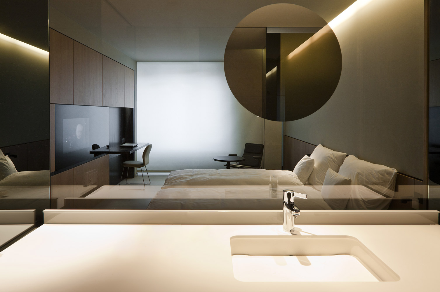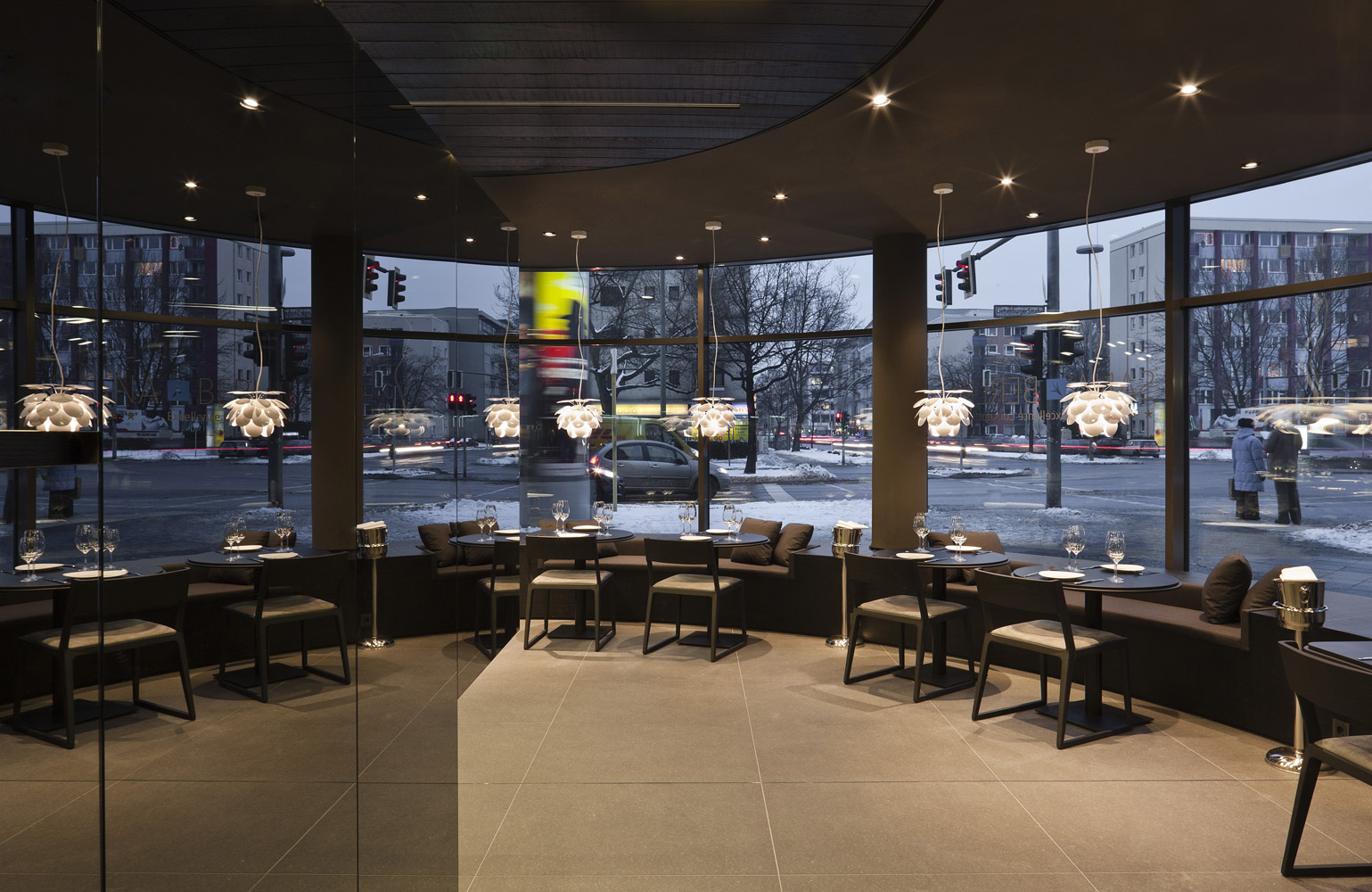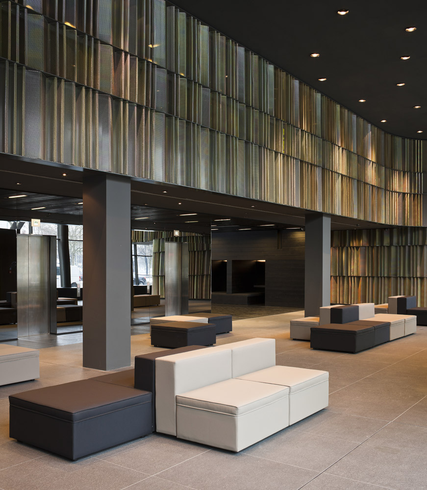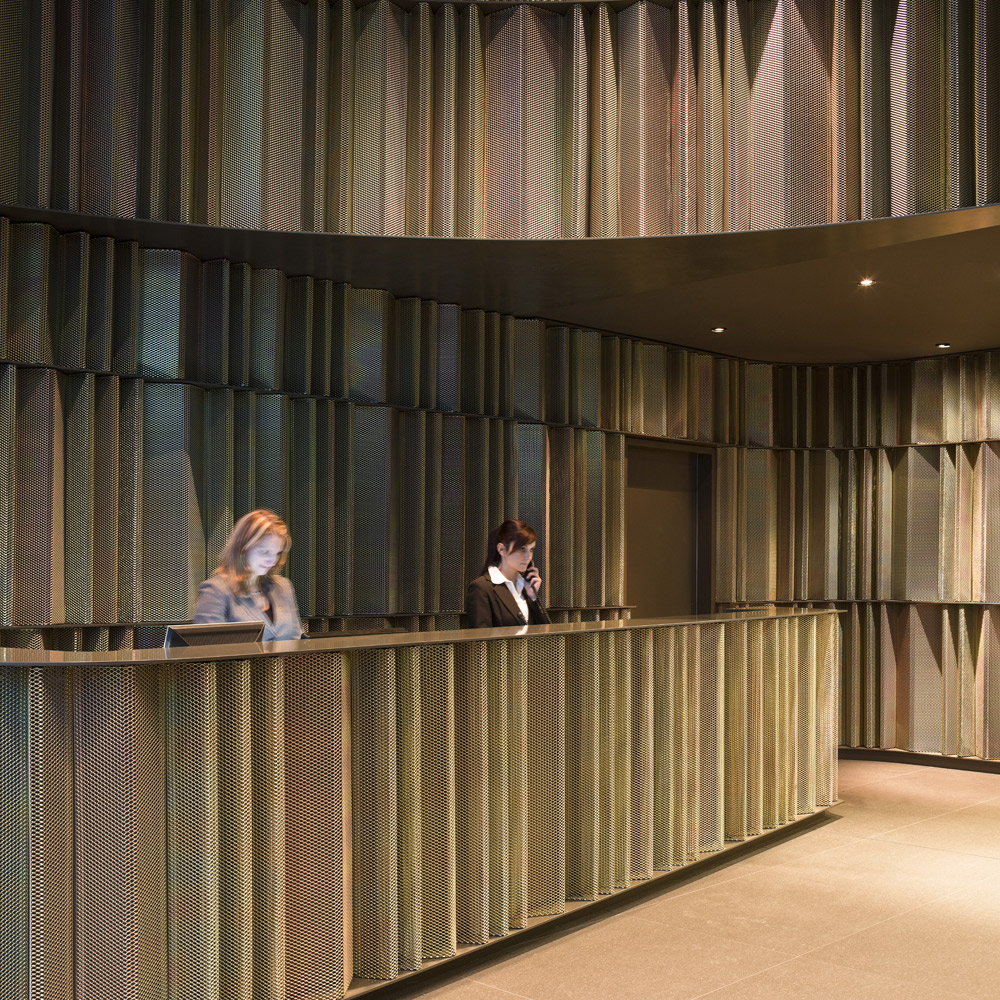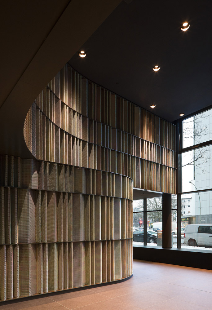 This hotel in Berlin is situated in the centre of the German capital city. For this reason, black granite stone has been chosen for the façade. As a result, it occupies its location in a neutral way in a continuously changing avant-garde city, the trendiest in Europe. The design of the façade and the round corners maintain a clear dialogue with the inside of the building aiming for an integrating philosophy, the essence of our studio in Barcelona.