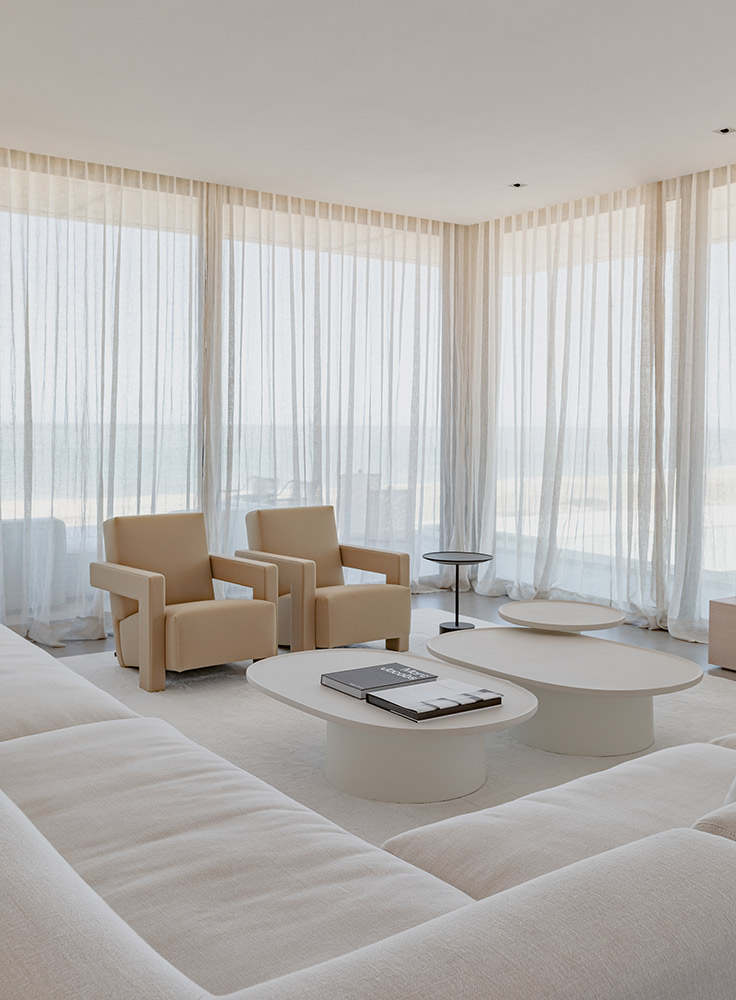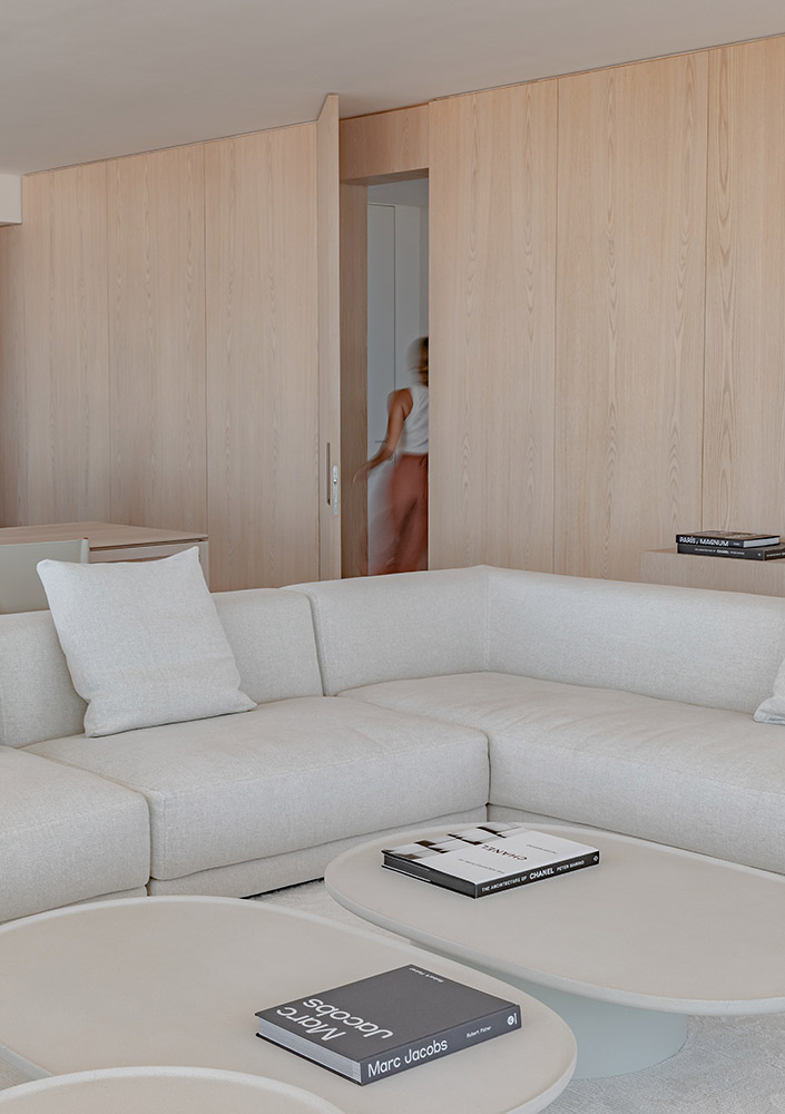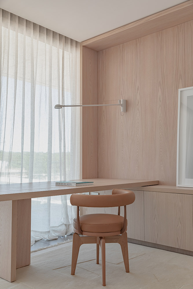 Between sand dunes, this apartment in Punta del Este takes advantage of the emotion of the surroundings and the views of the sea to draw an interior made of light natural wood in harmony with nature.