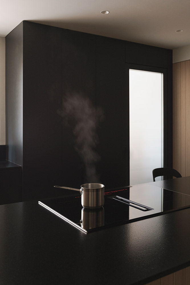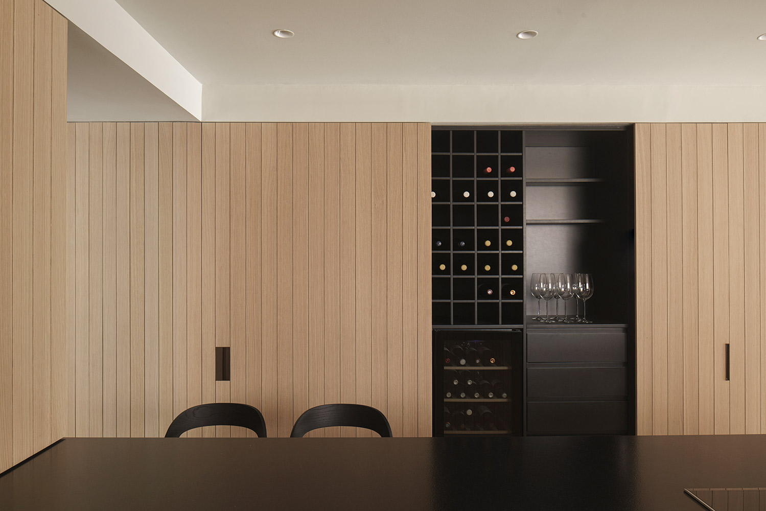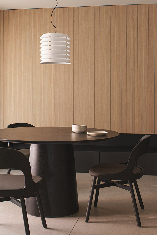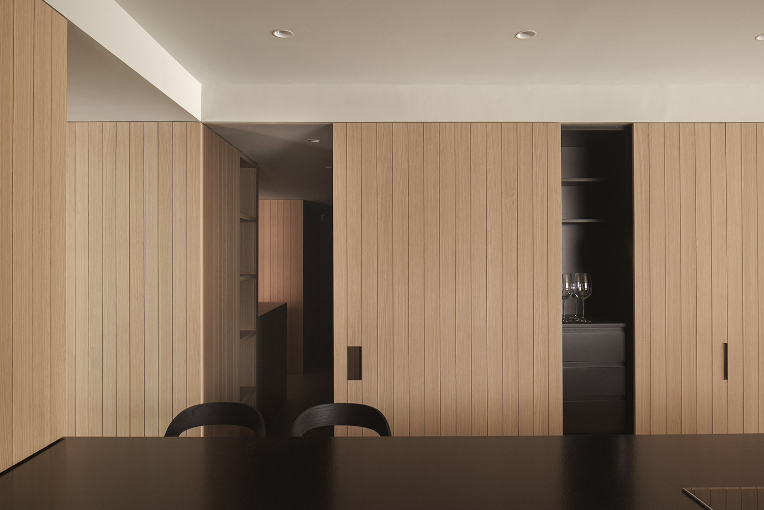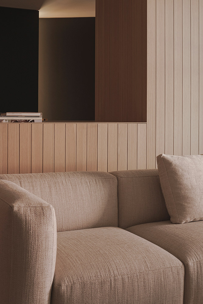 Interior design is a material art in which the tactile sense becomes as essential as space organization. In this new small apartment in Valencia, the oak wood slats were used as a sensitive and functional tool to achieve warmth and integration.