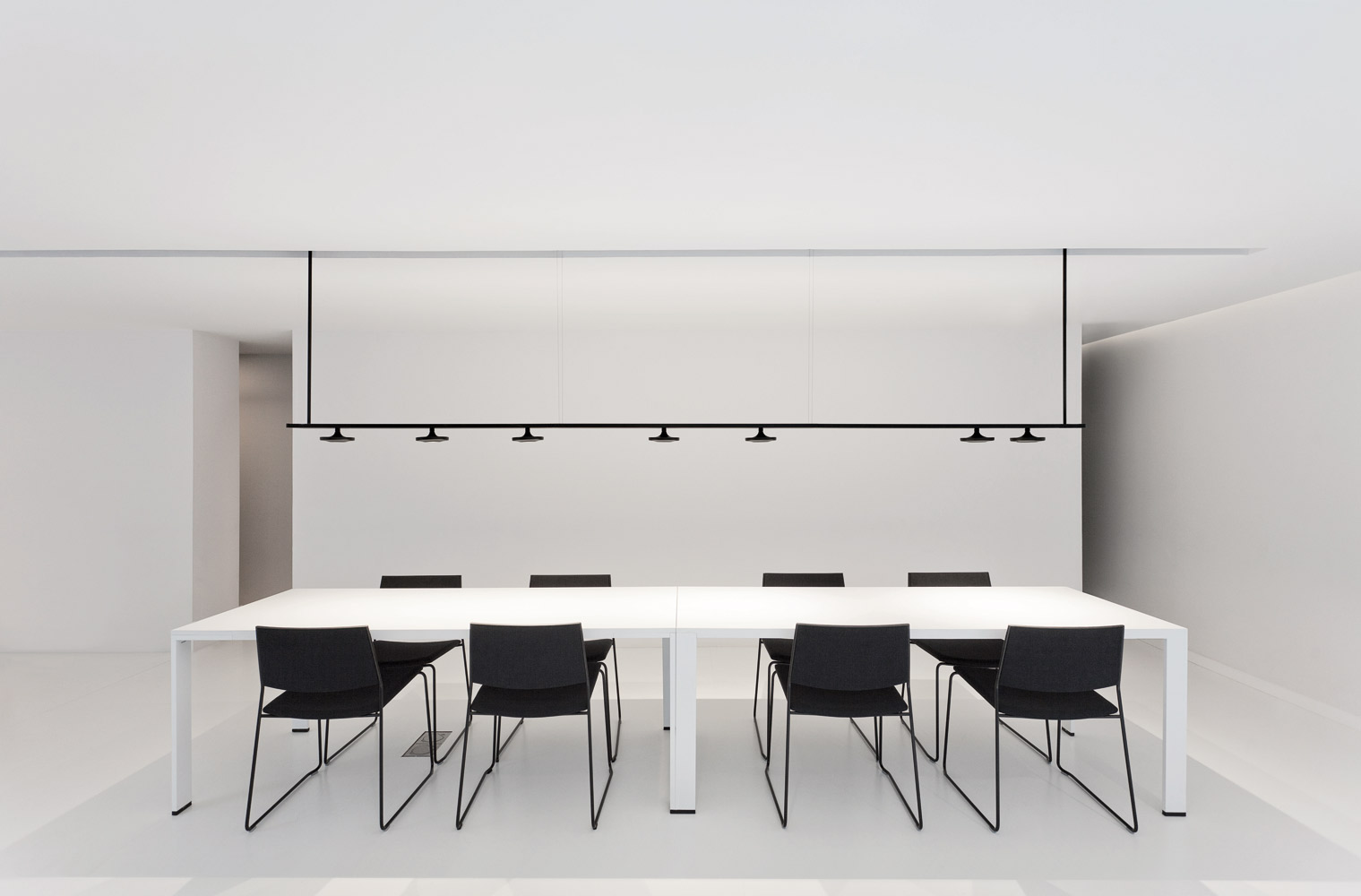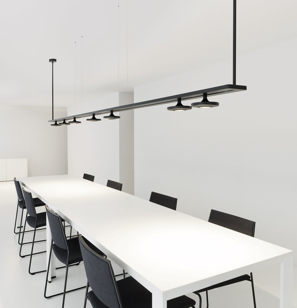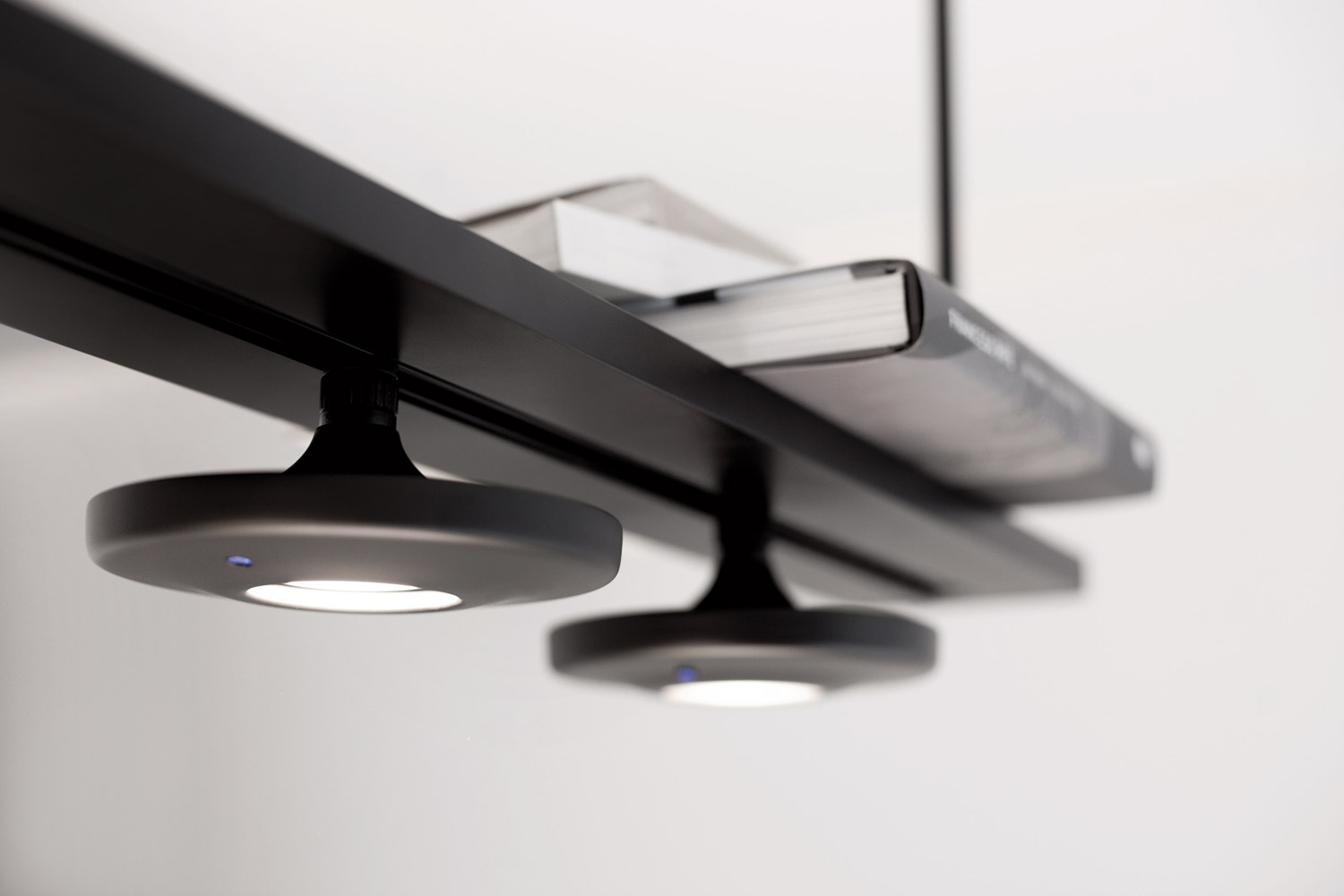 The defining feature of this cutting-edge lighting system is its adaptability to users' needs in multiple ways: it functions as a practical shelf, can illuminate both large and small spaces, and each light head includes a touch sensor that allows for individual dimming and on/off control. Additionally, each head can be positioned independently along the electrified track to suit any arrangement.