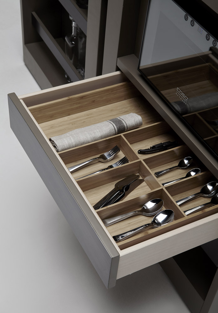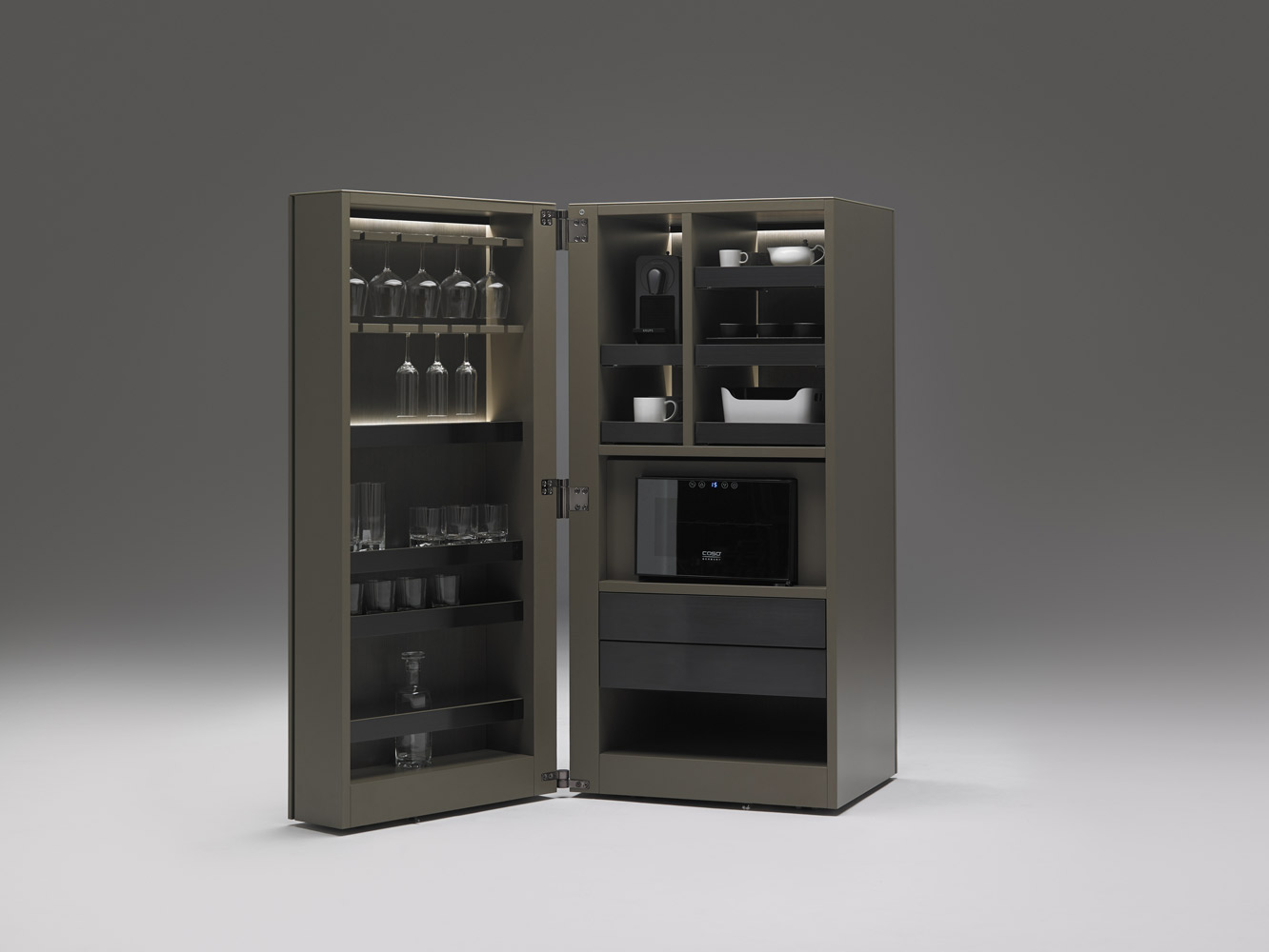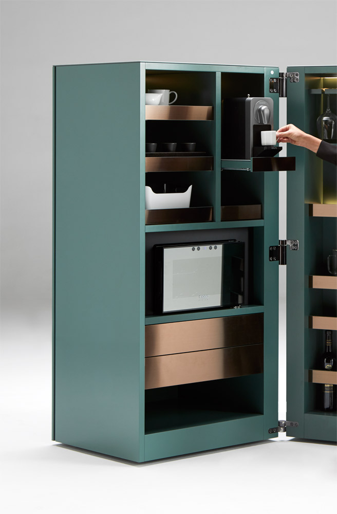 OK is a minimalist interpretation of a kitchen space. It houses utensils, as well as being equipped for household applicances and LED lighting.