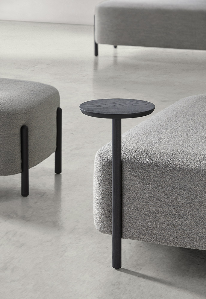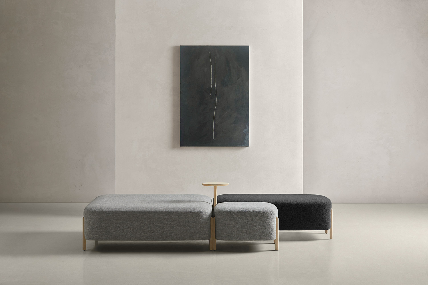A fully rational collection of benches for Blasco&Vila. A voluminous seat rests on minimalist legs devoid of superfluous details, and occasionally converted into a side table. Pieces are made of solid ash wood and available in natural or black.