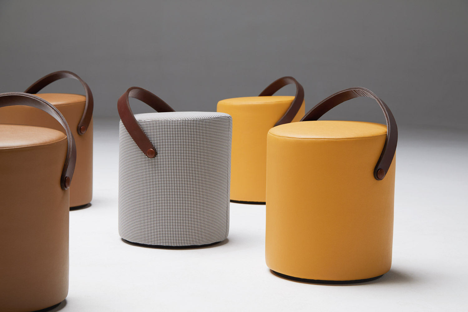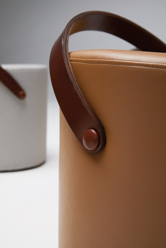 With a geometric simplicity intrinsically linked to our designs, this cylindrical stool is born as a complementary functional seat. The leather handle is connected to a padded body that facilitates its mobility, as well as contributing to the aesthetic personality of the piece along with the choice of height and color. A slight inclination on the seat surface provides the necessary comfort and stability.
